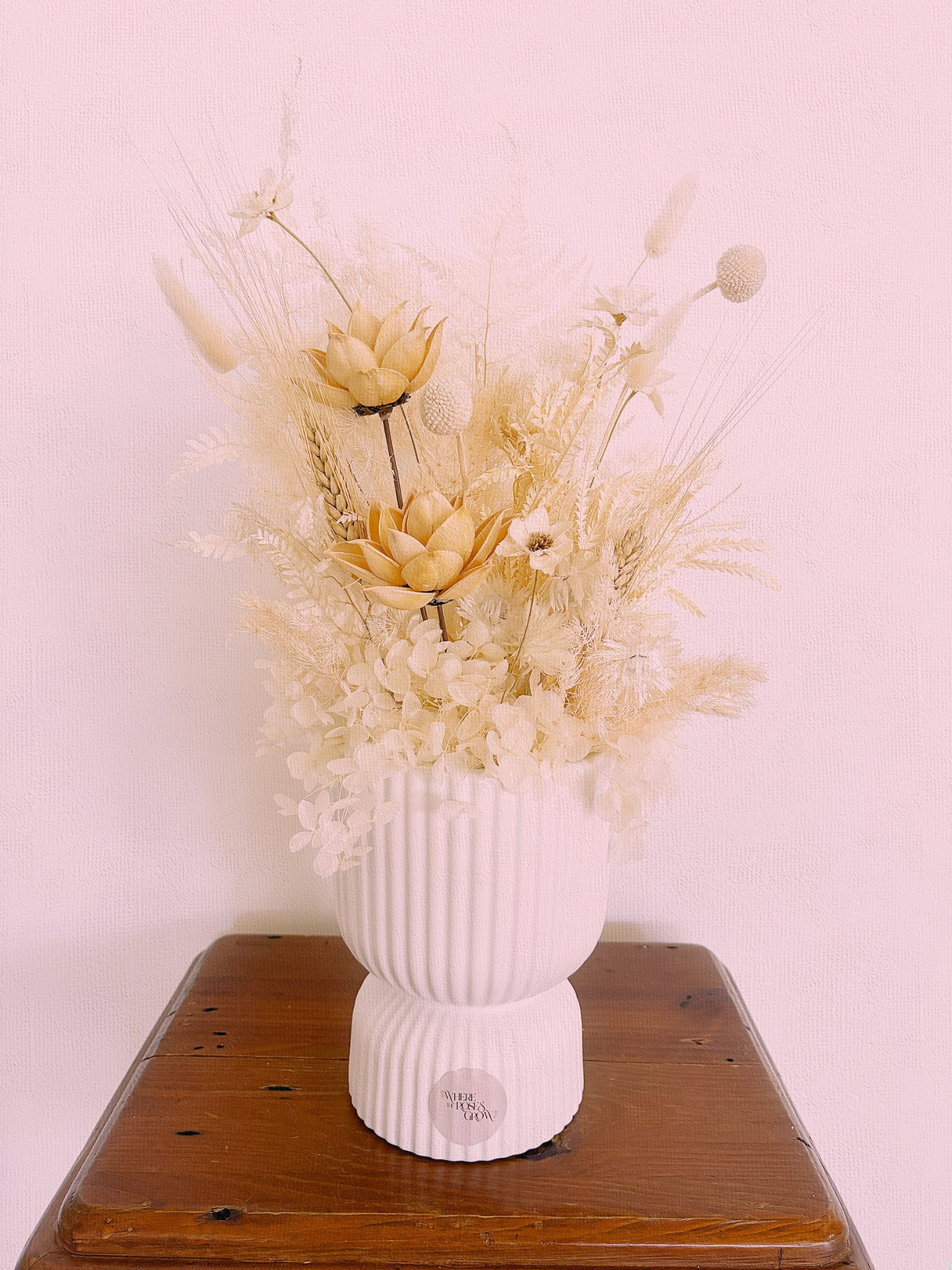 Celebrate the timeless beauty of nature with our hand-crafted dried flower arrangements and preserved bouquets, designed to last season after season. Each piece is thoughtfully created using a curated mix of roses, herbs, native flora, and cottage-garden favourites, bringing countryside charm into your home or event.